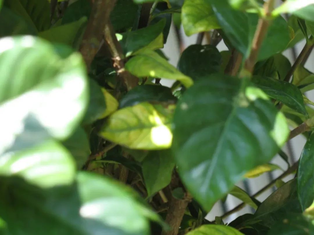如果家里的茶花、茉莉花、茉莉花或九里香,出现黄叶的情况,叶脉和叶脉的周边还是绿色的,但是叶脉之间的叶肉就是黄色的,这种黄叶的情况,就是土壤缺乏酸性肥,土壤的pH值偏高导致的。