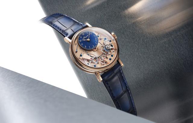 Tradition 7035,是这三款“纪念新作”中“最偷懒”的一款。Tradition系列的腕表识别度非常高,和普通款不同的是,Tradition 7035最大的变化就是表盘换成了蓝色半透明大明火珐琅,表壳材质采用了最新的“宝玑金”。从欣赏的角度来看,“宝玑蓝”和“宝玑金”的组合,确实挺好看。但对于以技术著称的宝玑,换个表盘颜色,换个表壳材质就成了纪念款,要说“最偷懒”应该不为过吧?