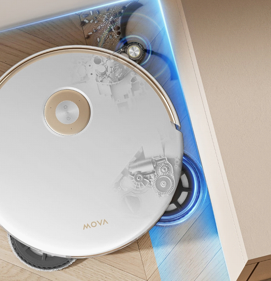 MOVA P60 Pro配备仿生双机械臂,支持边刷、拖布双外扩,深入全屋的边角缝隙,搭配其82mm超薄机身,可自由穿梭于床底、沙发等低矮盲区,进一步增强全屋清洁覆盖率。