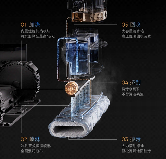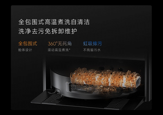 追觅X50 Pro履带版还配备免拆卸维护的全能自清洁基站,新升级全包围式高温煮洗自清洁技术,确保大面积履带拖布能够实现高效去污除菌,有效避免细菌滋生与异味产生。