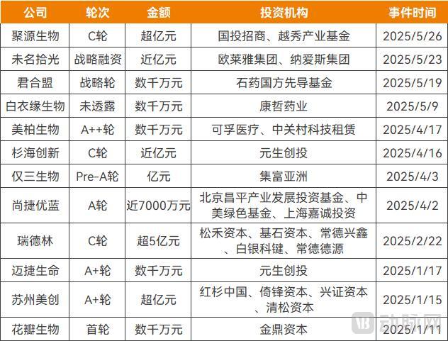 2025年以来获得融资的医美材料企业,资料来源:公开报道