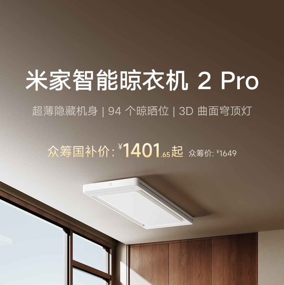 在智能晾衣机领域,此前小米已经推出过多款产品,并且在 2022 年也推出过超薄设计的 Pro 系列产品。来到 2025 年,小米又带来了米家智能晾衣机 2 Pro,并且目前已经上架众筹页面。