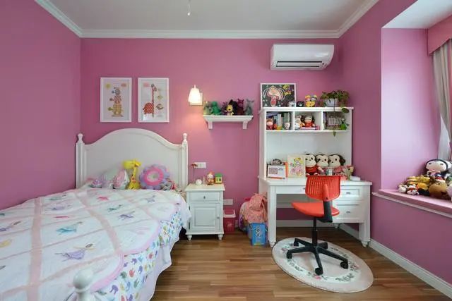 粉色儿童房融入白色石膏线点缀,效果依旧出色,令人喜爱。