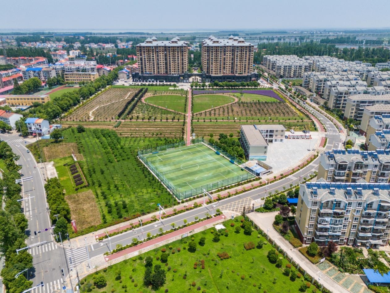 武汉经开区湘隆路与“湘口之心”鸟瞰图。图/武城管提供