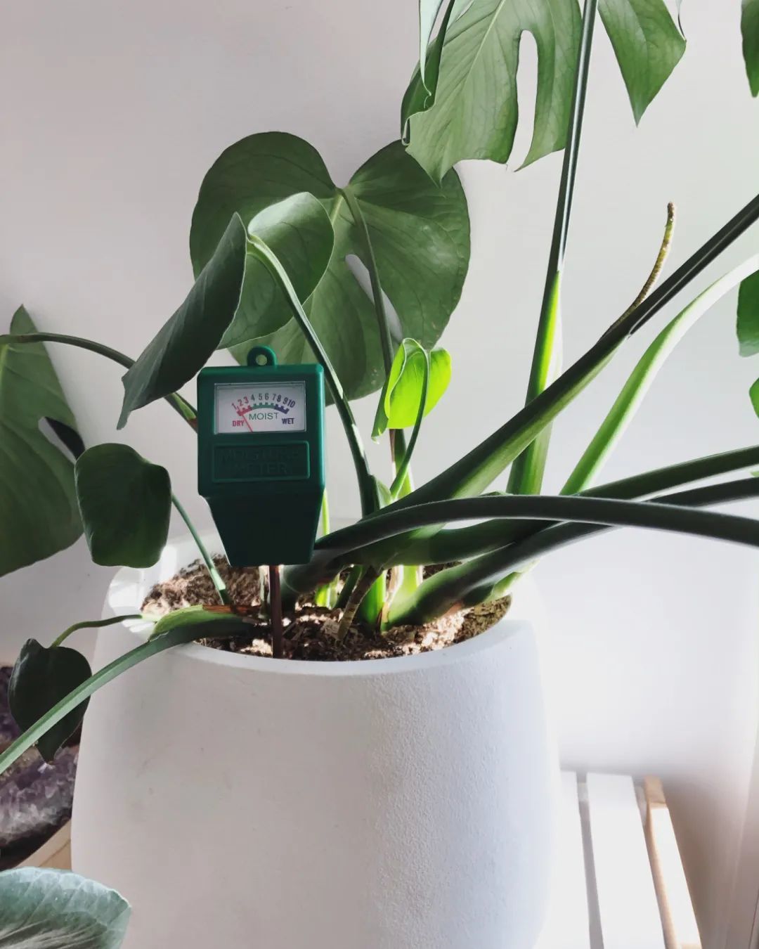 当然,我是不太建议大家一开始就买这些专业的测量仪,特别是家里养的花不太多的时候。当然如果你家里有养一些茶花、茉莉花或蓝莓之类植物,对土壤酸碱性要求较高的植物,要定期检查土壤的酸碱性,那就可以买上一个,除了检测土壤的干湿状况,还可以检测土壤的酸碱性。