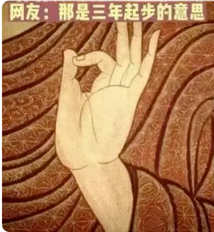 其实,佛像的手部姿势称为mudrā,汉译为“手印”。拇指与食指尖相触,其余三指伸展,这既不是OK,更不是三年。