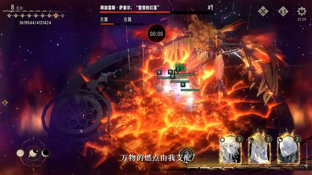《银与绯》选择了哥特风的美术,在二次元品类中更突出风格化。游戏在玩法层面采用了放置卡牌玩法,并且在后续测试版本中围绕技能设计加入了「血月模式」,当3名角色分别打出新月、残月、满月技能后触发全体buff效果,为常规的卡牌玩法增添了一定的策略维度。另外游戏还对真理奥德赛玩法增加了Roguelike和buff管理机制,在策略卡牌玩法的基础上提供了割草的体验。