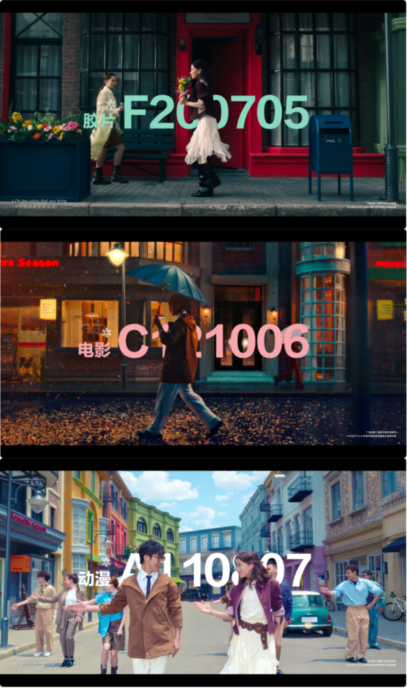 短片中,男女主角在繁华街道偶遇相识的画面被三种滤镜演绎出不同味道,其中“电影风”让画面呈现出暖黄色调,给人以深邃复古之感,“胶片风”赋予照片浓郁的故事感;而“动漫风”则自带透明感,让画面灵动鲜活,生动展示了华为Pura 80系列在影像风格塑造上的强大能力,也让大众对它的创新影像技术充满了期待。