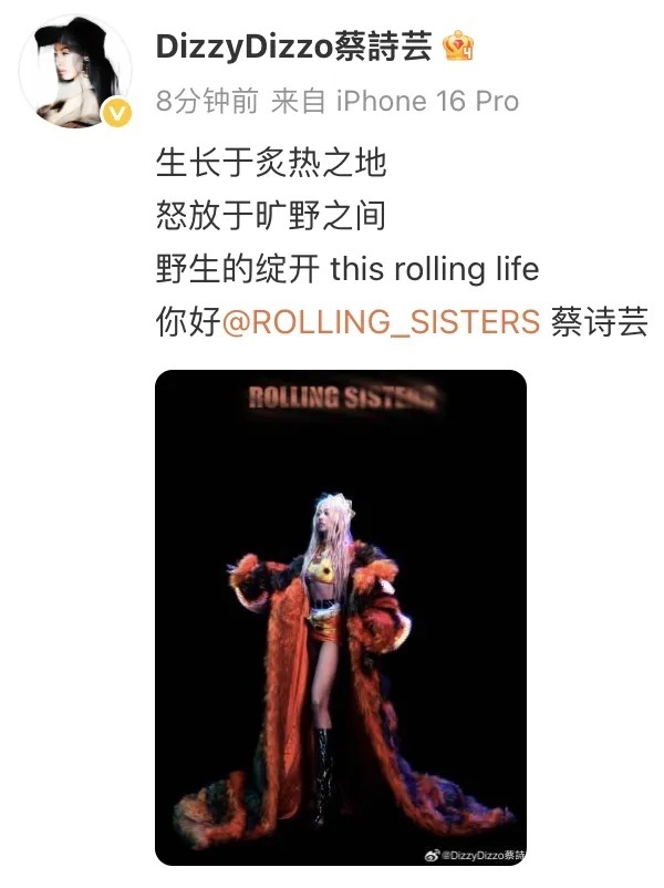 蔡诗芸:“生长于炙热之地,怒放于旷野之间,野生的绽开,this rolling life,你好ROLLING_SISTERS蔡诗芸。”