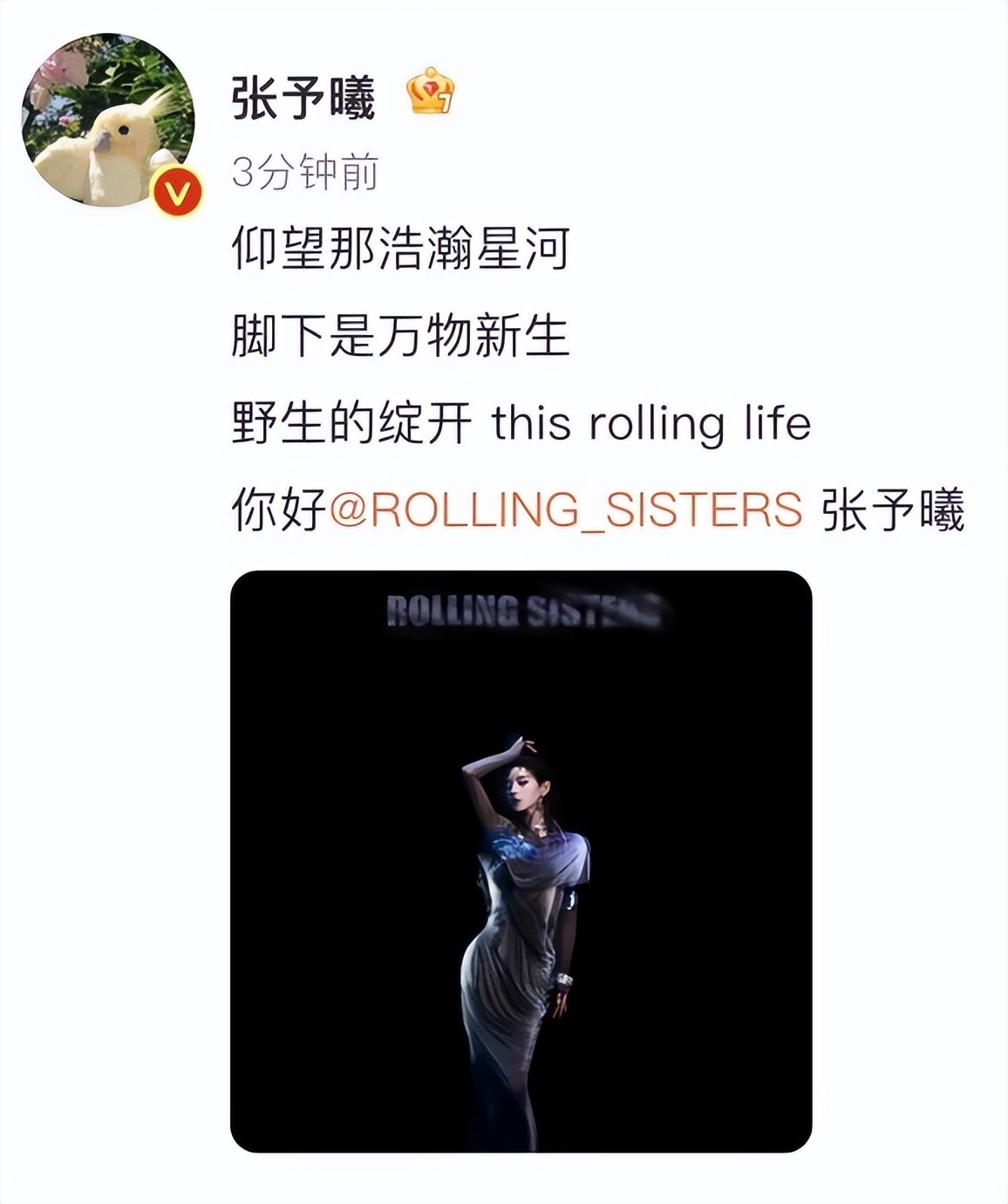 张予曦:“仰望那浩瀚星河,脚下是万物新生,野生的绽开,this rolling life,你好ROLLING_SISTERS张予曦。”
