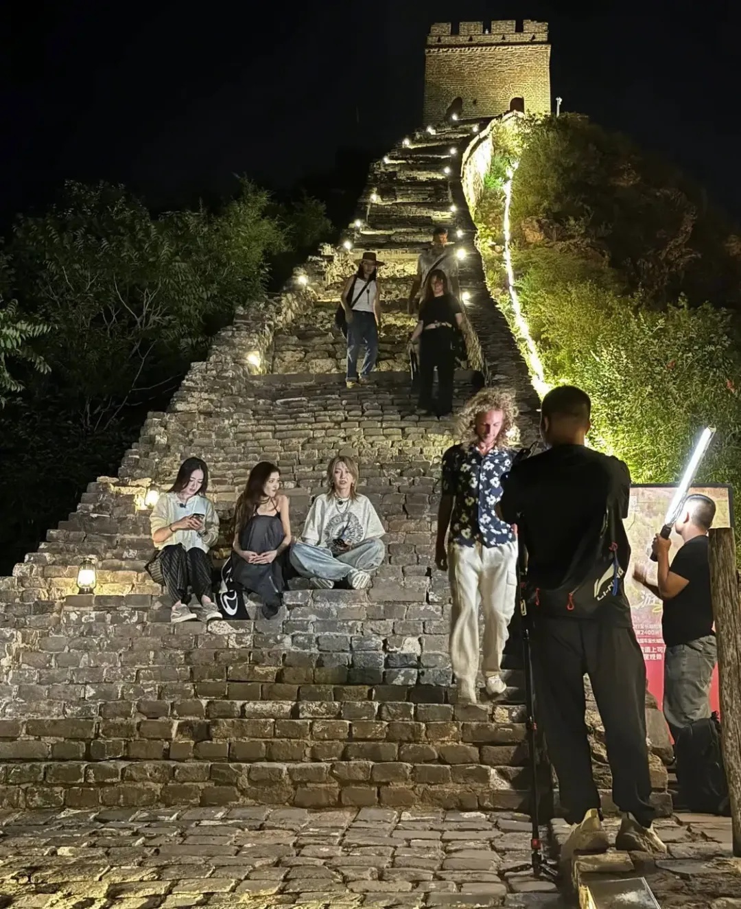 6月9日,有网友偶遇郭碧婷、张予曦、刘忻一同夜爬长城。照片中,三人坐在长城石阶上相谈甚欢,画面十分温馨。