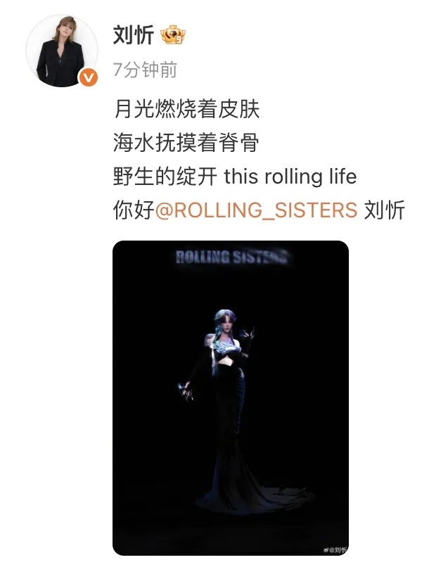 刘忻:“月光燃烧着皮肤,海水抚摸着脊骨,野生的绽开,this rolling life,你好ROLLING_SISTERS刘忻。”