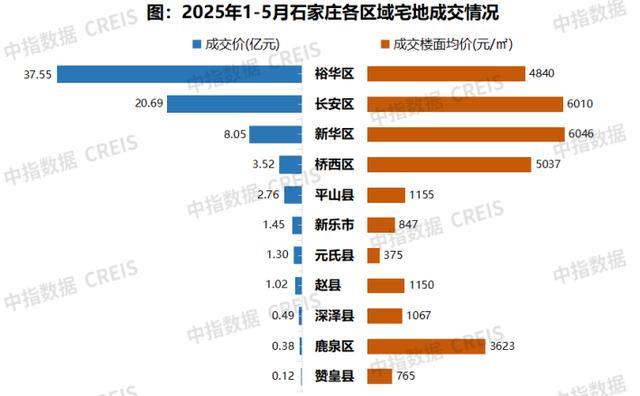 土地出让金:2025年1-5月裕华区宅地土地出让金全市最高,土地出让金为37.55亿元,新华区成交楼面均价全市最高,成交楼面价为6046元/㎡。