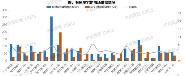 供求规模:从供给端来看,2025年5月石家庄推出11宗宅地,规划建筑面积58.91万㎡。从需求端来看,2025年5月成交8宗宅地,规划建筑面积36.40万㎡。