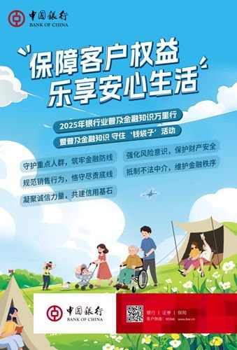 中国银行2025年银行业普及金融知识万里行暨“普及金融知识 守住‘钱袋子’”活动于6月正式启动。中国银行以全面提升消费者金融素养为目标,积极践行以人民为中心的价值取向,帮助社会公众增强维护自身合法权益的意识和能力,营造和谐、安全、健康、可持续的金融消费环境。
