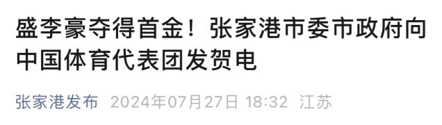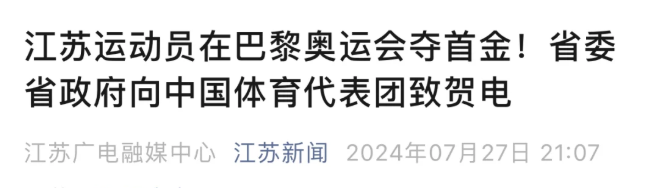 夺金的消息传回江苏省,多方发来贺电,多地感到自豪。