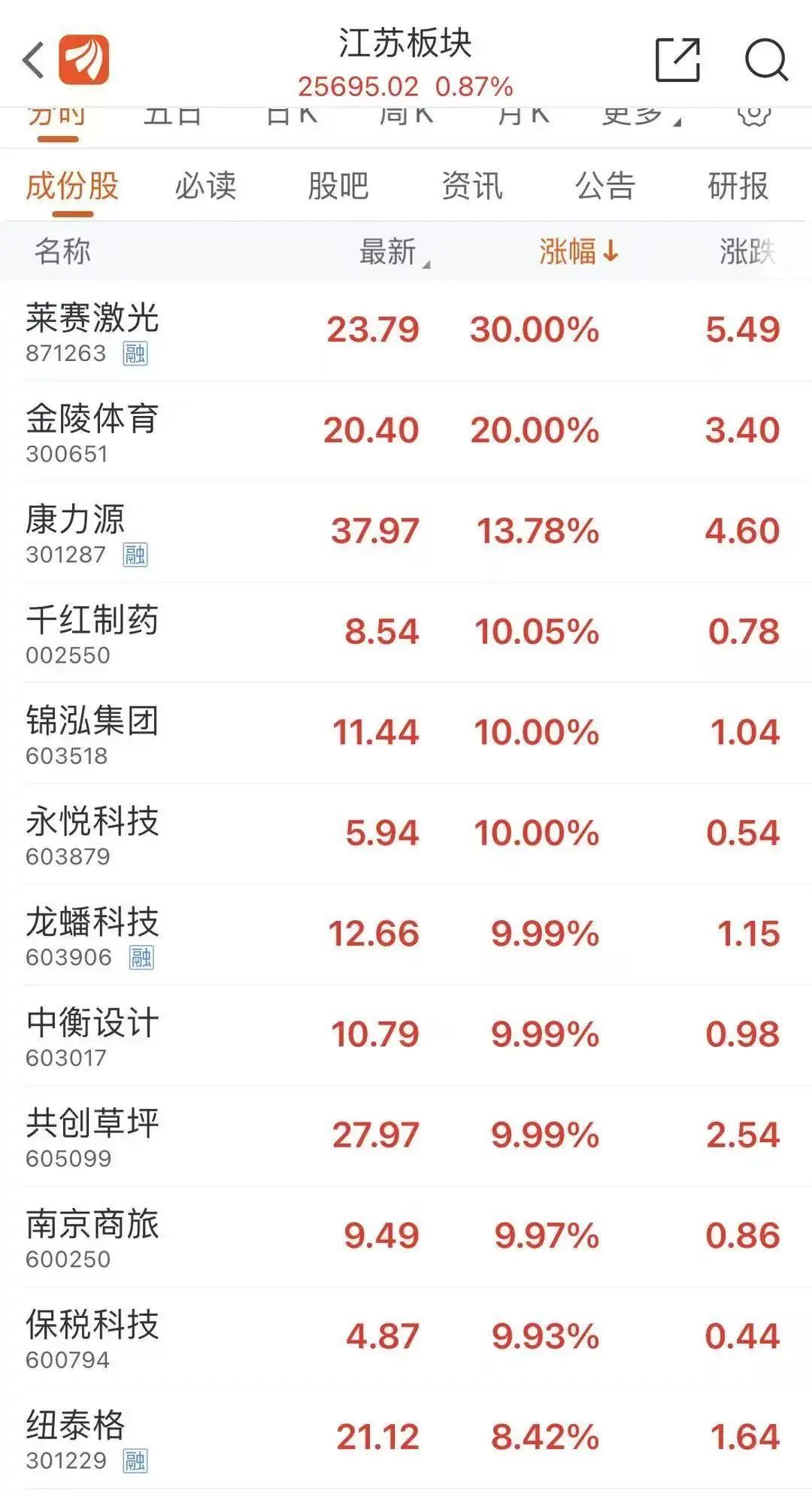 就在全网疯玩苏超梗时,江苏人正在闷声发大财:江苏板块股票大涨,一度11只股票涨停。