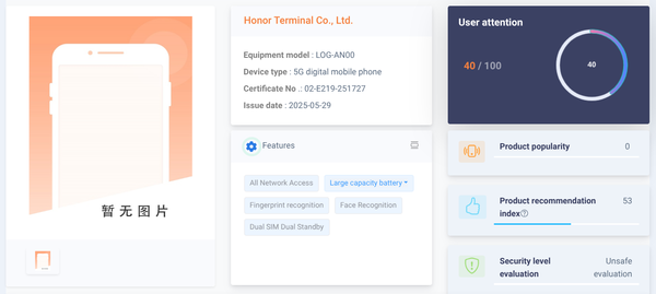 近日,一款全新荣耀Play系列手机现身工信部(TENAA)认证平台,其型号为“LOG-AN00”,预计将命名为荣耀Play 70 Plus。从认证页面曝光的信息来看,这款新品在核心配置方面有不少升级,或已临近正式发布阶段。