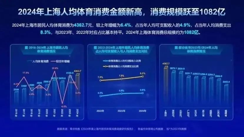 去年《上海居民体育消费调查报告》显示,2024年上海人均体育消费达4362.7元,相较2023年增加6.4%,消费总规模约为1082亿。这组数据也反映出市民参与体育活动的热情持续高涨。