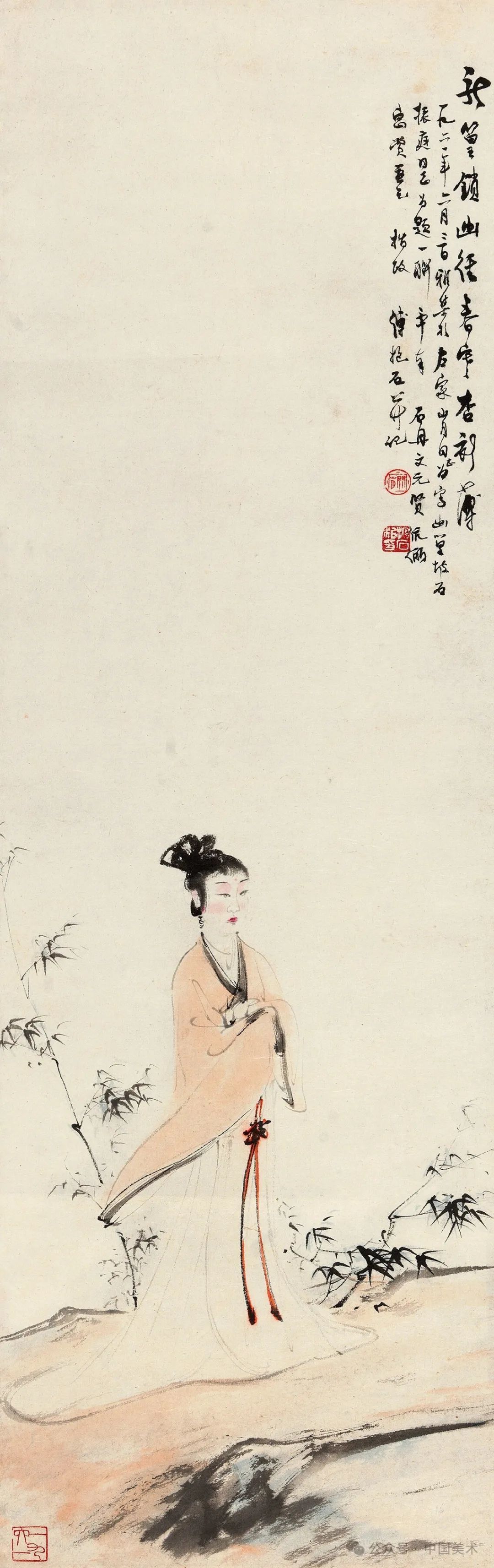 傅抱石、关山月 春寒杏衫薄