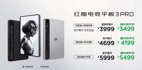 【CNMO科技消息】6月11日19:00,红魔电竞平板3Pro暨红魔电竞宇宙新品发布会正式举行,备受瞩目的红魔电竞平板3Pro正式亮相,新平板共推出了三个储存版本,售价3999元起。