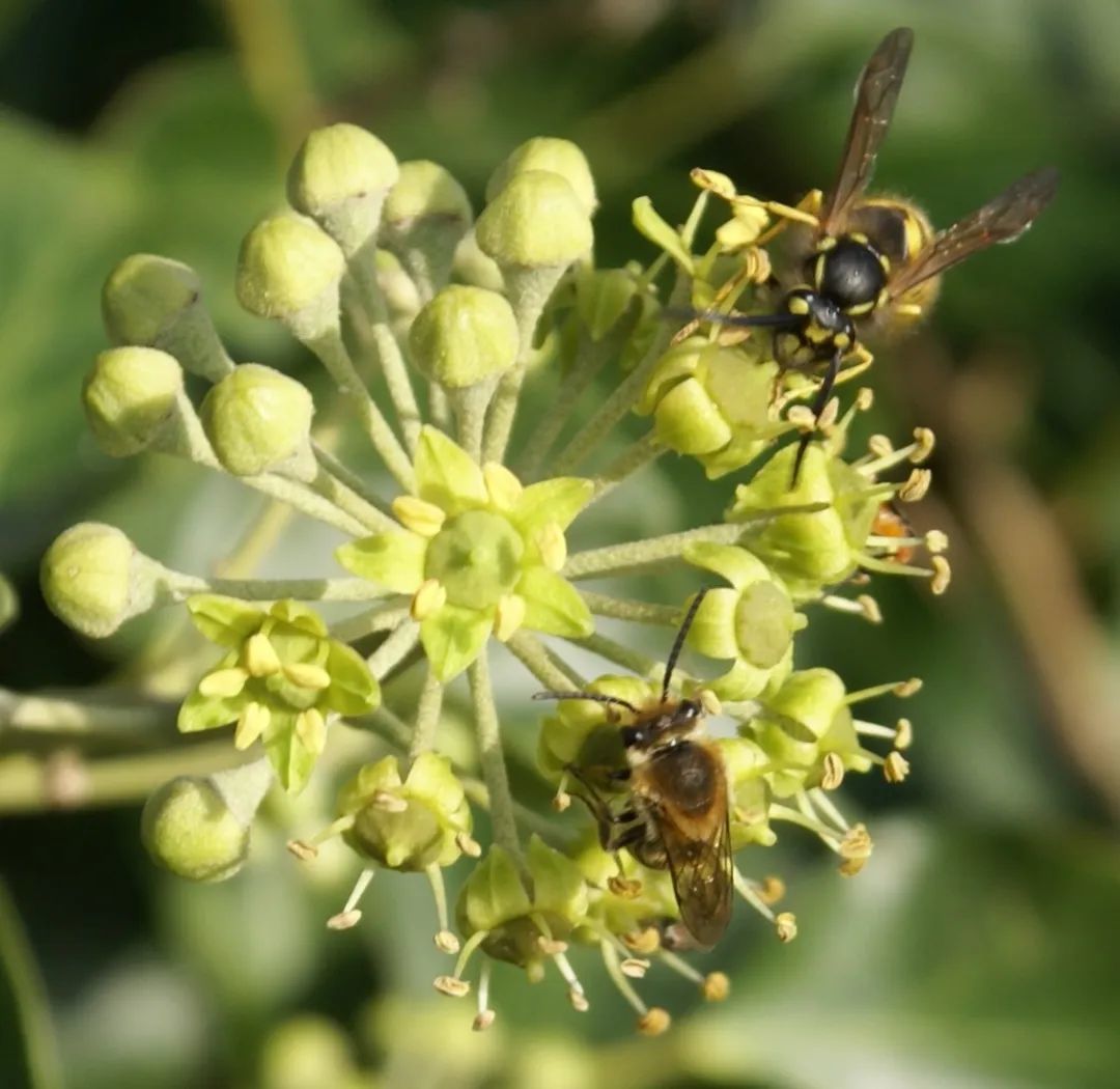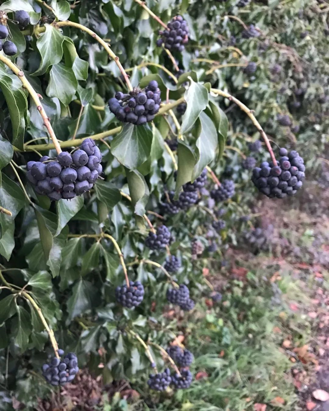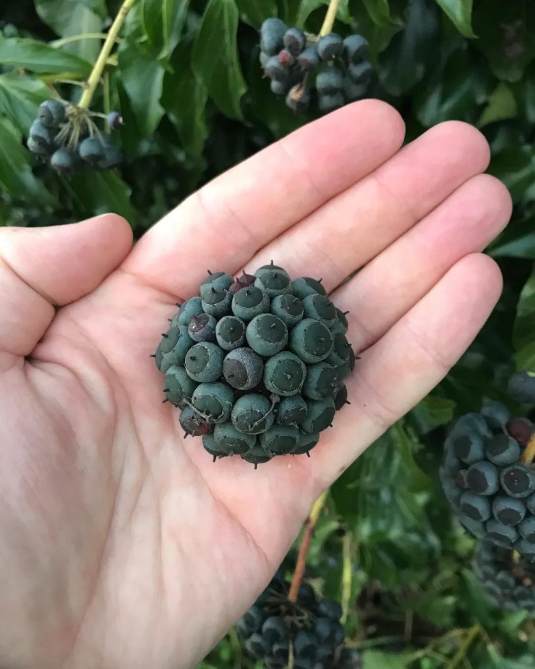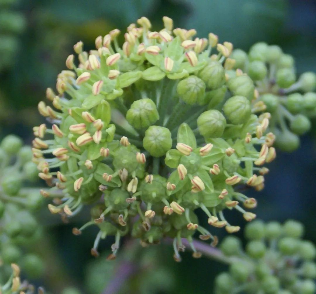 下面分别是常春藤的花朵和果实,注意,它们的花叶和果都是有毒的,一定要避免误食,否则会引起腹泻、呕吐等症状。