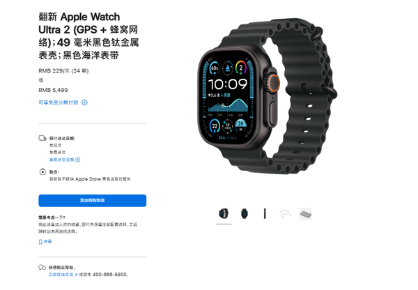 苹果中国官网近日上架认证翻新的Apple Watch Ultra 2(GPS+蜂窝网络),售价5499元,较全新机(6499元)优惠1000元,降幅约15.4%。作为苹果最高端的智能手表,其翻新版本是否值得入手?需从产品性能、价格优势、保障政策等方面综合评估。