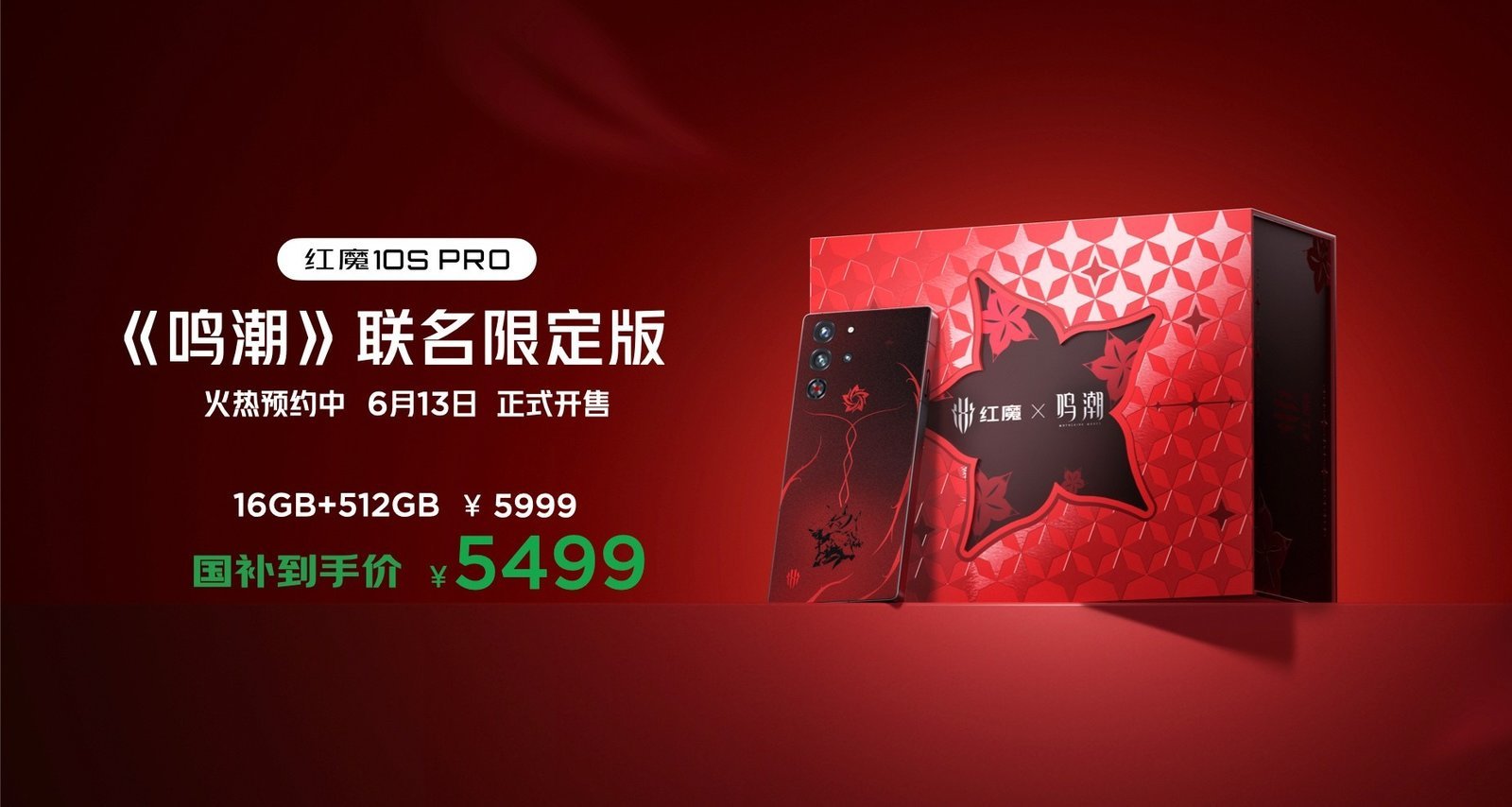 6 月 13日消息,红魔 10S Pro《鸣潮》联名限定版手机今日上午正式开售,售价:5999元;国补到手价:5499元。