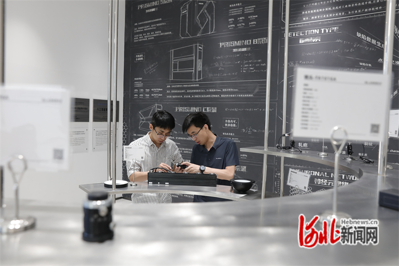 图为6月12日,在河北第六镜智能科技有限公司,工作人员正在查看产品情况。河北日报记者师源摄