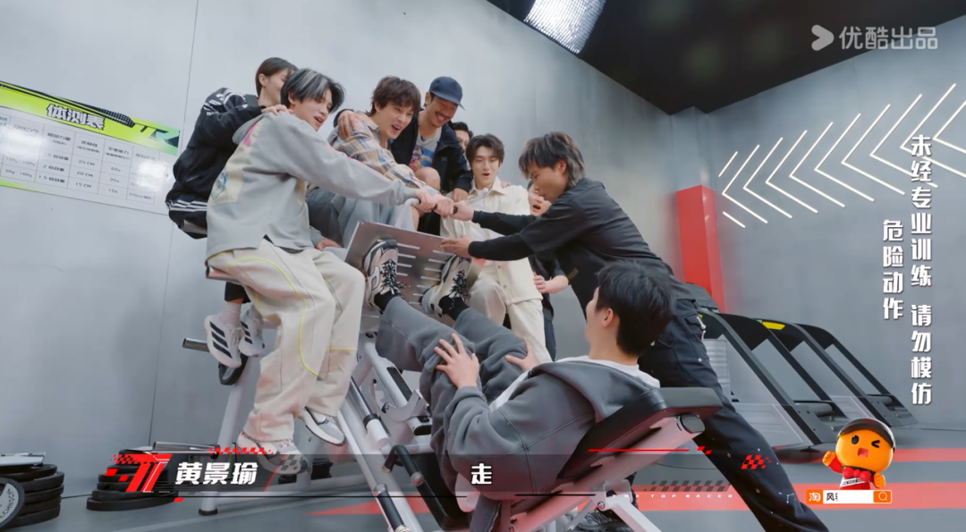 后有黄景瑜腿上功夫了得,倒推训练蹬起全场所有嘉宾,这一脚或许真的能蹬飞整个地球。