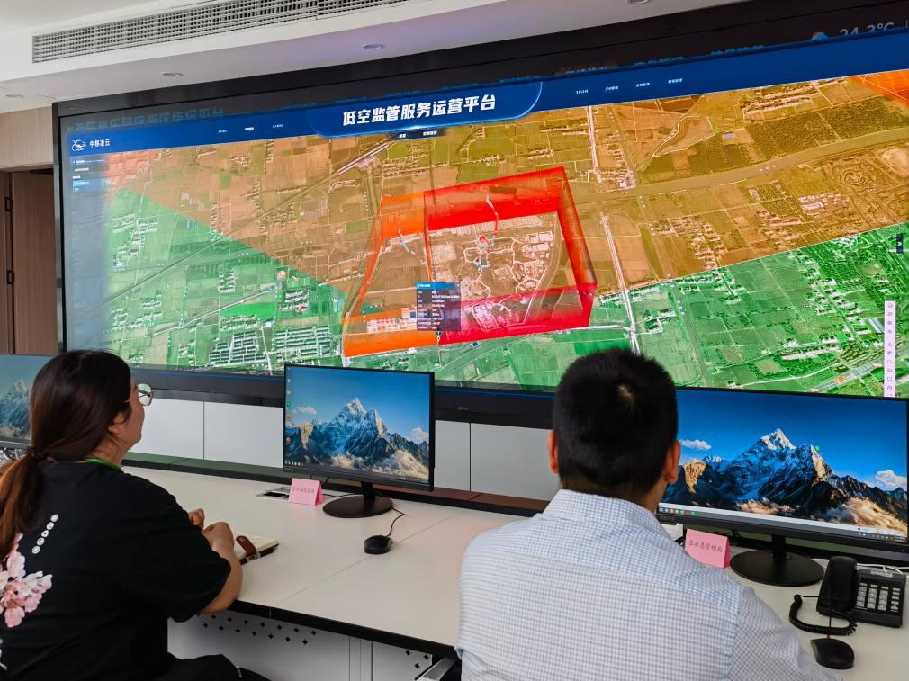 6月12日,工作人员运用“上海乐高乐园度假区指挥平台”监测乐园周边低空环境。新华社记者 陈爱平 摄
