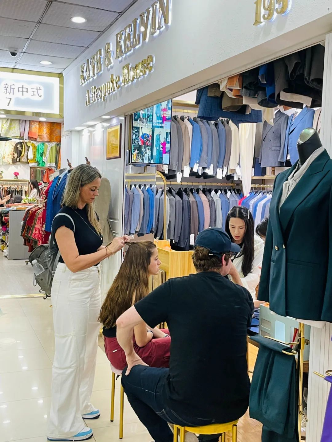 “刚好现在有免签政策,一周多时间量尺寸、选面料、做衣服生产。”