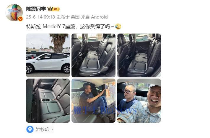 6月14日,知名车评人陈震去洛杉矶体验7座特斯拉Model Y了。