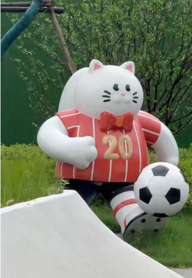 6月10日,九派新闻记者来到花山河社区,这里停车场的导览线也点缀着粉色猫爪图案,还有猫咪吉祥物形象出现在运动场、卫生间等各个角落。