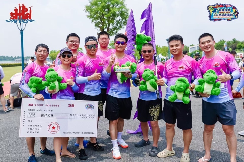 随着锣鼓声响起,比赛正式拉开帷幕。龙舟队员们挥桨如飞,动作整齐有力,龙舟似游龙昂首,在河道中劈波斩浪、奋勇向前。现场气氛热烈,观众的加油声、欢呼声此起彼伏。经过激烈角逐,SHDR龙舟队凭借出色的发挥,以两轮计时赛1分42秒56的总成绩摘得桂冠;度假区火焰蓝龙舟队紧随其后,以1分46秒91位居第二;霍尼韦尔工会龙舟队以1分51秒16位居第三。