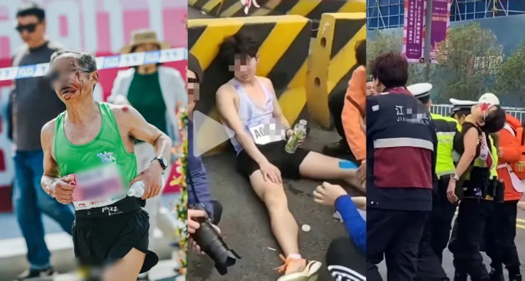 起跑的时候,每个人都是精神焕发,激情昂扬,而到最后10公里,你会看到有人弯腰扶着膝盖大口喘息,有人踉跄着走向路边拉伸,更多人脸上浮现痛苦表情……