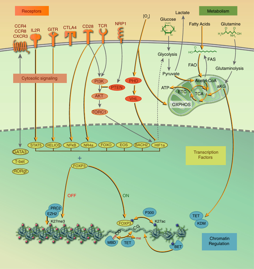 Treg 细胞的功能调节涉及多种激酶,这些激酶通过调控细胞代谢、转录、表观遗传及信号转导等途径,精准控制 Treg 细胞的发育、存活、增殖和免疫抑制能力。