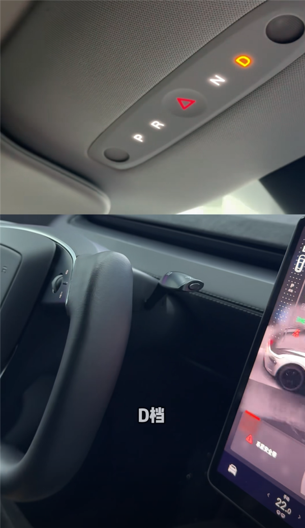 特斯拉焕新版Model Y/3车型,车内布局较大的一项改变就是完全取消了实体挡把,采用屏幕和车顶按键的方式换挡。