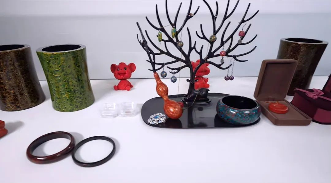 借助科技力量,俞平团队用数控设备切割材料、激光雕刻勾勒线稿,而镶嵌、抛光等核心工序仍由双手完成。这样一来,制作周期大大缩短,也极大地缩减了成本。这使得俞平团队能够推出更多性价比极高的文创产品,让漆器和百宝镶嵌得以走进千家万户。
