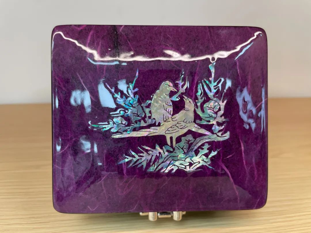 百宝镶嵌最初的原材料多采用珍珠、珊瑚、玉石、玛瑙等名贵之物,手艺人耗时数月依据材料的质感与颜色,精心制作出山水人物、花卉翎毛等图案,再镶嵌于漆器或木器之上,最终形成五光十色、富丽堂皇的装饰品。