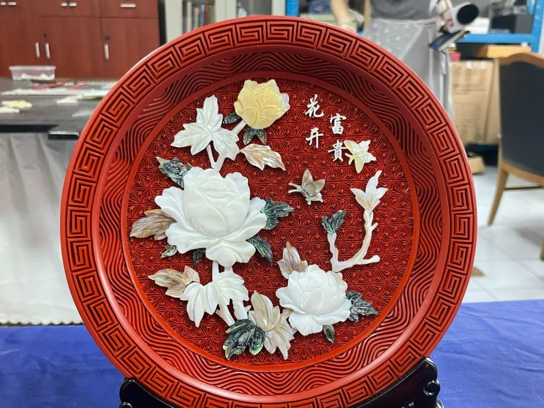 其创作的《白玉兰》《随行》《石榴》等三件漆器作品,凭借卓越的艺术价值,被进博会和上海档案馆联合永久收藏,成为向世界展示中国非遗魅力的闪亮名片。