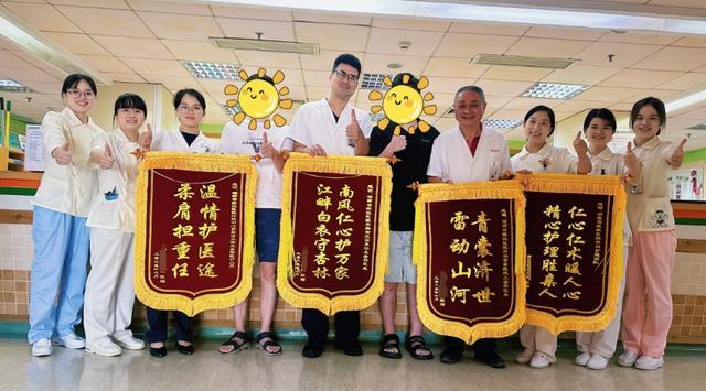 出院这天,阿杰送来了五面锦旗,每一面文字都是他亲手构思:致骨科全体医护团队:“仁心仁术暖人心,精心护理送亲人”;致ICU全体医护人员:“守护重症显担当,情暖生命践初心”;致骨科医学中心雷青主任:“雷动山河、青囊济世”;致管床黄江南副主任医师:“江畔白衣守杏林,南风仁心护万家”;致五大中心董顺清行政主任:“柔肩担重任,温情护医途”。