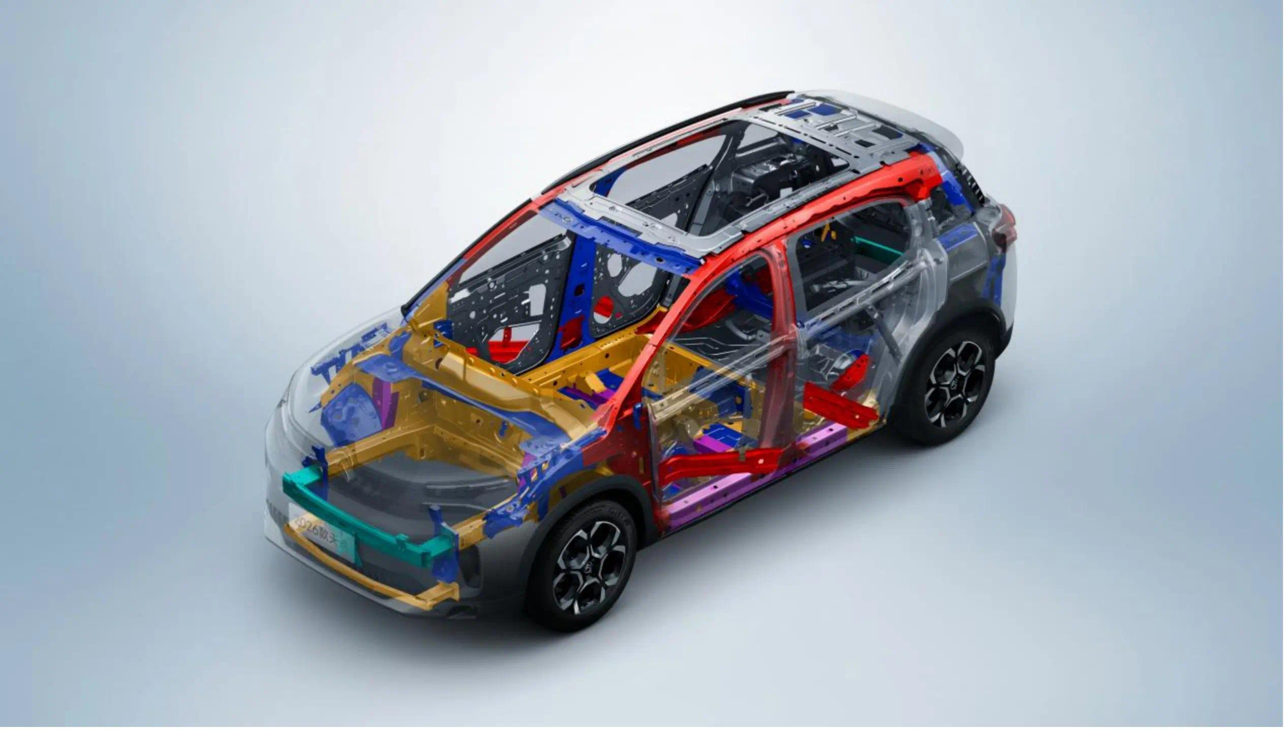 车身强度方面,2026款天逸C5 AIRCROSS拥有至高1600MPa的高强度车身,高强度钢使用比例高达65.06%,在A柱和B柱、车顶轨道、门下围挡、门槛梁等部位大量使用热成型钢(PHS),形成“太空舱”结构,可以在发生严重碰撞时减小变形量,保护车内乘员安全。