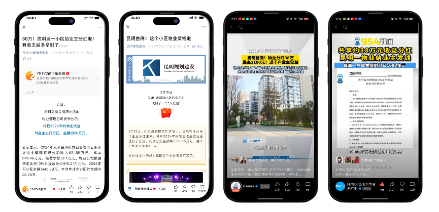 义承物业,昆明首个「不赚钱物业」,承诺每年盈余为业主分红,2025年2月义承置业物业旗下项目义承・金川府已完成首次分红38.05万元,用数据印证「服务至上」的初心。