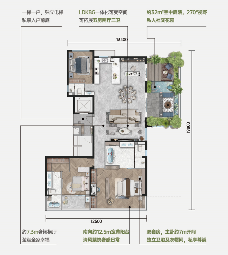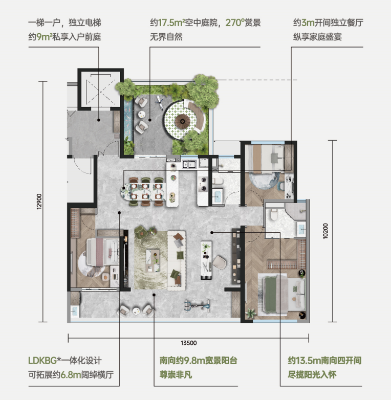 五、户型鉴赏,约135-213㎡第四代空中大平院