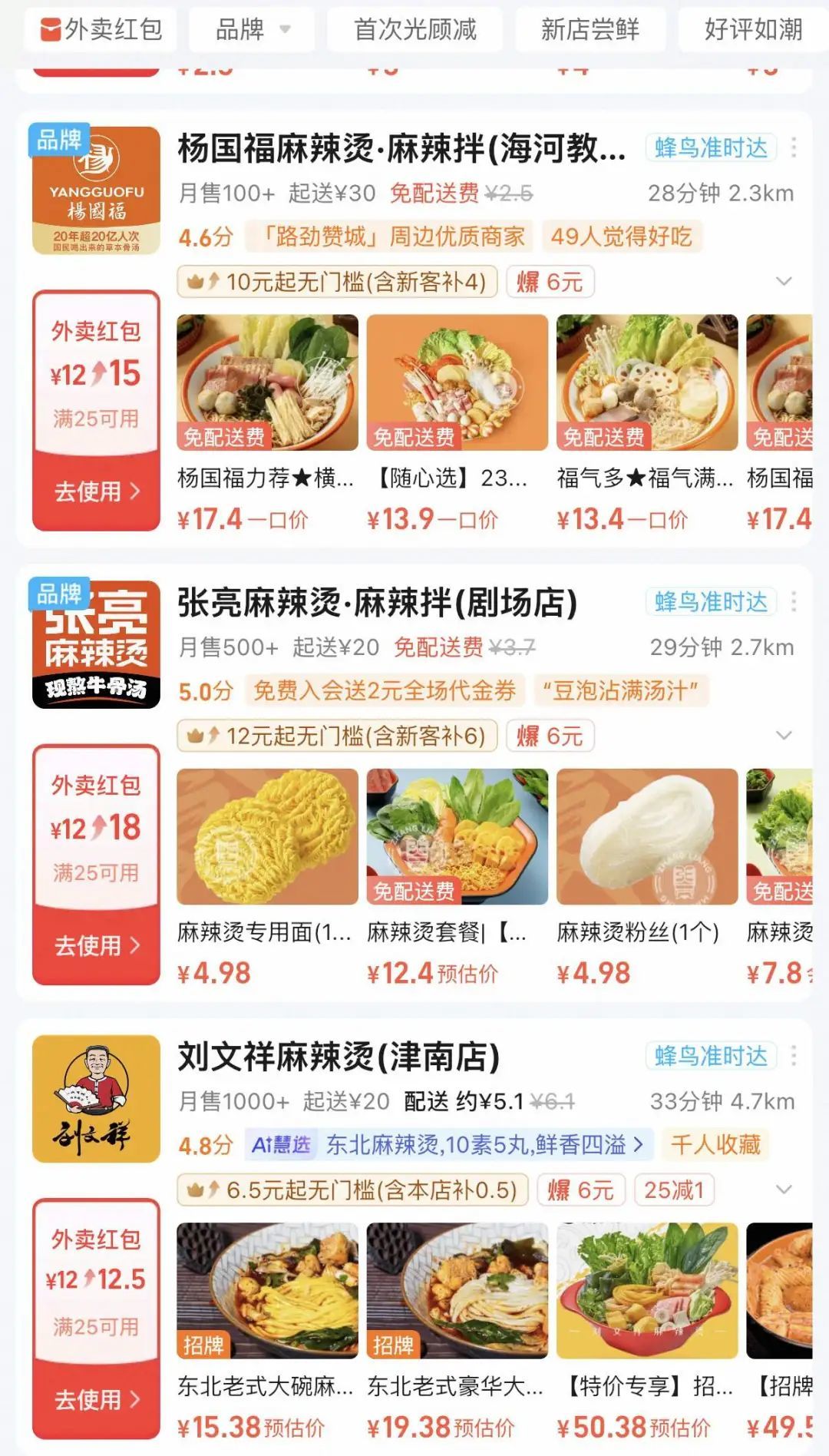 除了火锅店,麻辣烫店也是“名人齐聚”,从遍布大街小巷的杨国福麻辣烫、张亮麻辣烫,到刘文祥麻辣烫、马玉涛麻辣烫,这些耳熟能详的连锁麻辣烫店无一不有名有姓的。