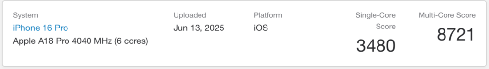 只看跑分,在 GeekBench6 中 领头大哥A18 Pro 的单/多核得分分别约为3500 分和 8700 分,而安卓旗舰芯片高通骁龙 8 至尊版对应成绩是 约 3300 分和 11000 分。