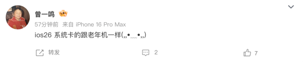 菜是原罪。iOS26 的体验那么差,归根究底就是苹果处理器的性能不够强。
