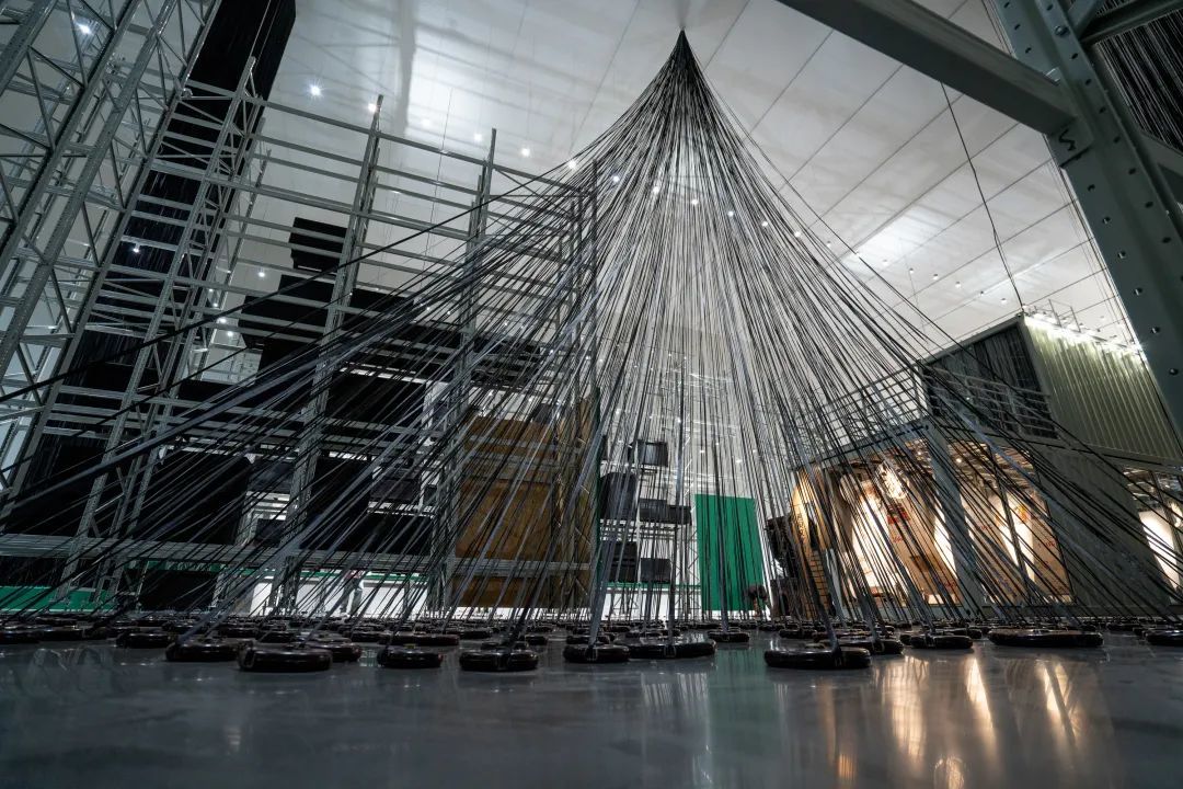 场馆内,冷峻的钢铁线条、铆钉焊缝、标准几何体......工业理性的视觉符号遵循“形式追随功能”,而钢铁之躯内,承载的是人类对流动性与归属感的永恒追问,并开启了艺术如何真正接入现实生活、并在此类独特的企业生态中栖身的讨论。