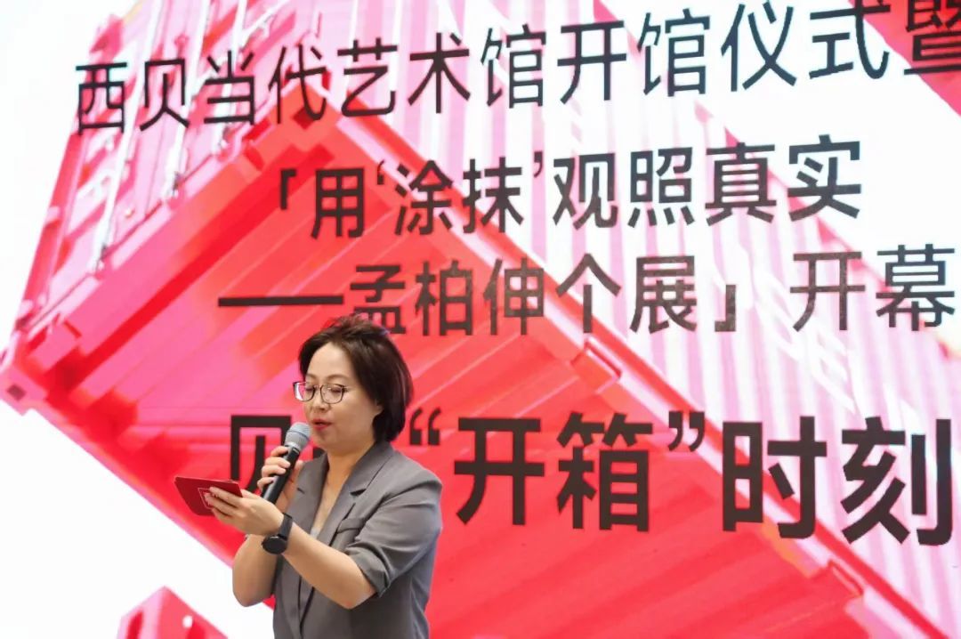 ▲ 西贝当代艺术馆馆长张丽平宣布开馆,西贝当代艺术馆“开箱时刻”现场